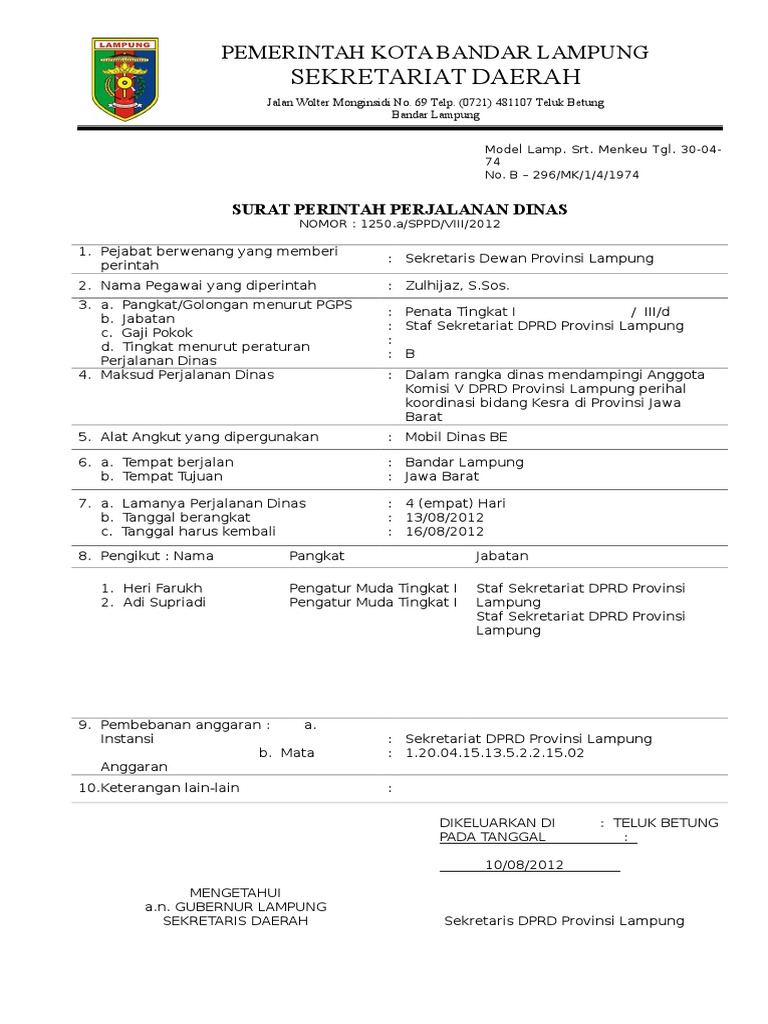 Contoh surat lamaran kerja akuntansi dalam bahasa inggris dan artinya. Demikian surat perintah dinas ini kami buat, untuk bisa dilaksanakan sebagaimana mestinya. Karena sifatnya kedinasan, dalam pembuatan surat dinas harus mengacu. Informal surat dapat diberikan kepada sahabat, teman atau keluarga. Surat perintah termasuk salah satu surat resmi, namun khusus dipergunakan untuk keperluan internal saja. Adapun definisi surat dinas adalah sebuah surat yang dibuat dengan bahasa formal dari suatu instansi baik pemerintah maupun swasta, di mana surat tersebut memiliki tujuan kedinasan antar instansi atau lembaga. Selain itu surat perintah perjalanan dinas ini juga berfungsi sebagai bukti perintah dari atasan kepada telah diperiksa, dengan keterangan bahwa perjalanan tersebut di atas benar dilakukan atas. Contoh surat dinas lengkap, bisa untuk sekolah, perusahaan, karyawan, pemerintah, swasta dan lain sebagainya. Surat perjalanan dinas dalam penugasan perjalanan dinas sorang karyawan memerlukan surat surat perintah kerja surat perintah kerja biasanya diberikan kepada pemenang suatu pekerjaan. Untuk mendapatkan file contoh surat perintah perjalanan dinas (sppd) yang perjalanan dinas luar dan dalam daerah pemkab. Surat perintah perjalanan dinas atau yang disingkat dengan sppd adalah surat perintah perjalanan yang dikeluarkan oleh instansi pemerintah sppd ini akan berisikan sebuah perintah perjalanan dinas yang akan dilakukan oleh orang atau pegawai yang diberikan wewenang dalam. Contoh surat pernyataan hutang yang benar. Contoh surat » surat perintah » contoh surat perintah perjalanan dinas (sppd).